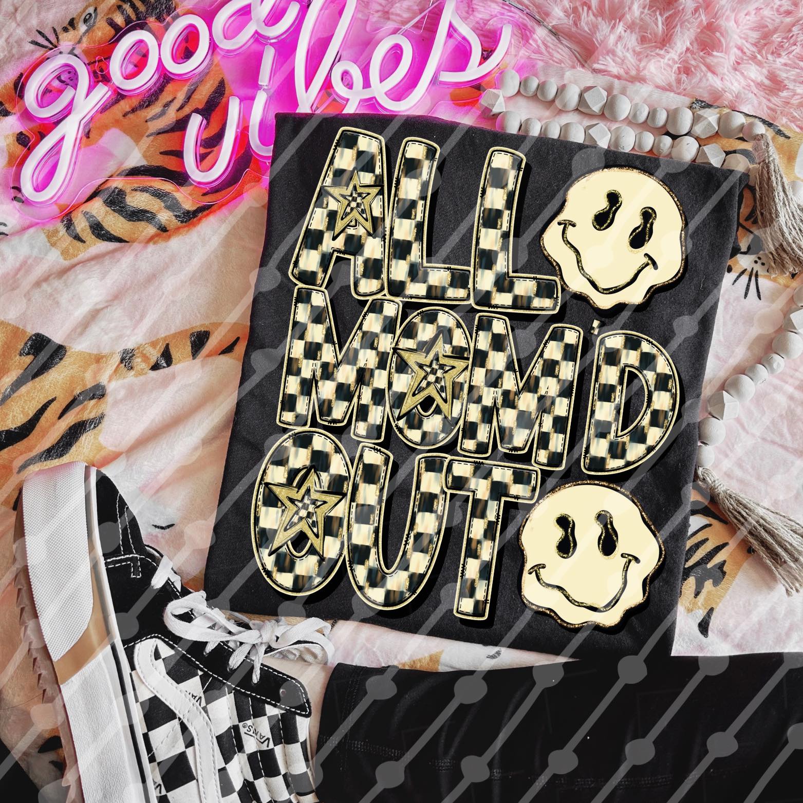 All Mom'd Out Green Gold Checks ~ DTF Transfer