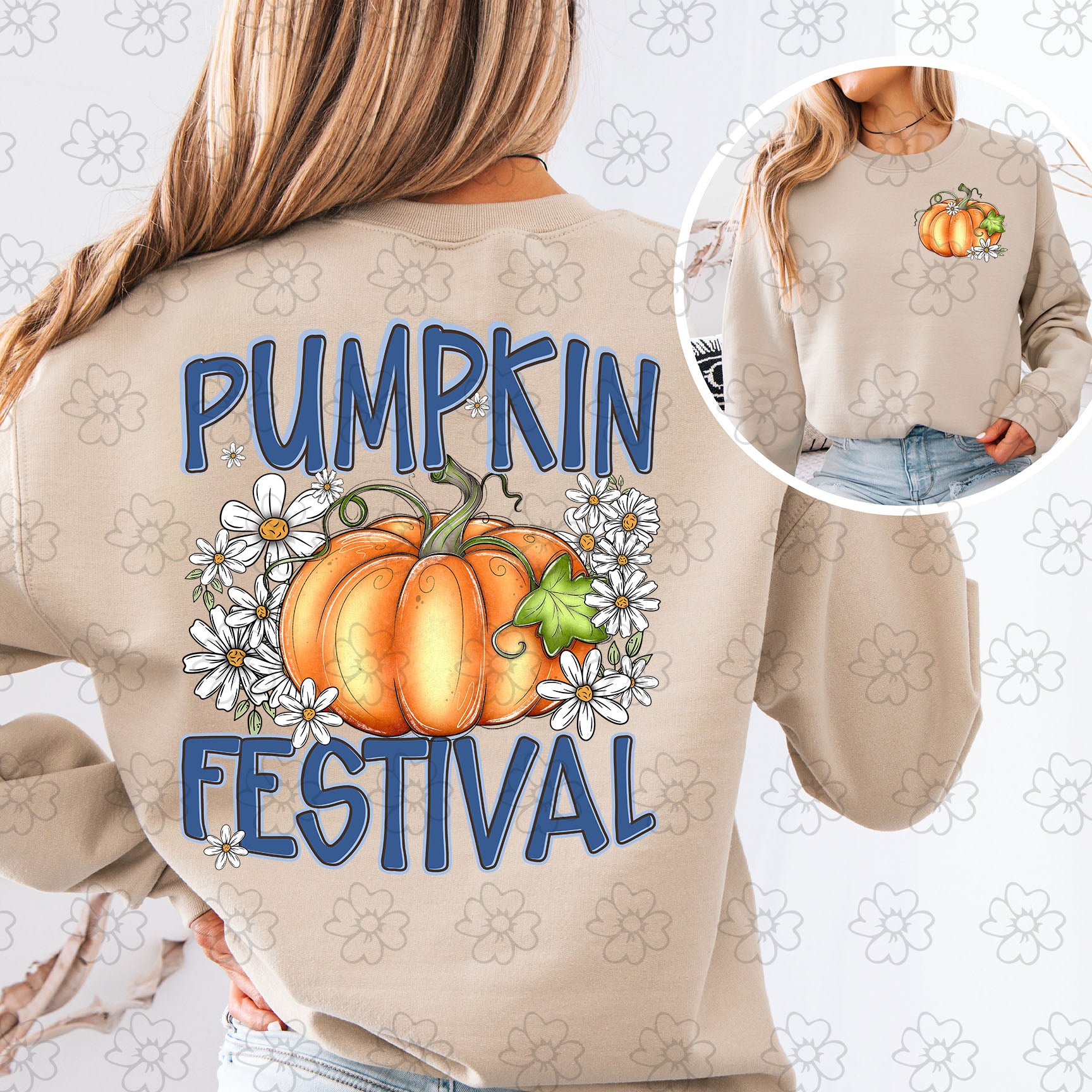 Pumpkin Festival and Flowers with Pocket Design ~ SAG25 ~ DTF Transfer